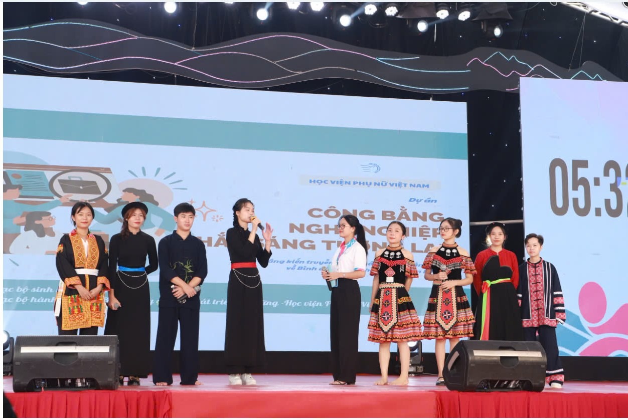 Đoàn sinh viên dân tộc thiểu số của Học viện Phụ nữ Việt Nam đã biểu diễn hoạt cảnh có nội dung về việc tự do lựa chọn nghề nghiệp để hiện thực hóa ước mơ và trình bày Dự án “Công bằng nghề nghiệp – Thắp sáng tương lai” tại chương trình giao lưu. Phần dự thi đã nhận được sự cổ vũ nhiệt tình của khán giả và Ban Giám khảo.