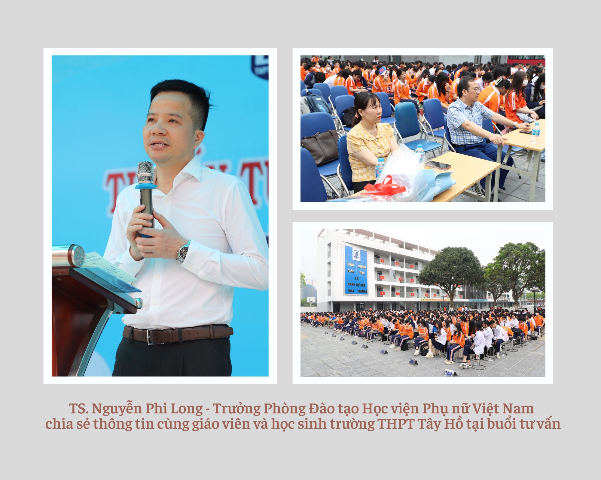 Buổi chia sẻ tại Trường THPT Tây Hồ là một minh chứng cho cam kết của Học viện Phụ nữ Việt Nam trong việc thực hiện sứ mệnh phục vụ cộng đồng thông qua giáo dục, góp phần trang bị hành trang tri thức và định hướng nghề nghiệp cho thế hệ trẻ. Thông qua hoạt động tư vấn tuyển sinh – hướng nghiệp, Học viện không chỉ mang đến thông tin thiết thực, đáng tin cậy mà còn chung tay cùng nhà trường và xã hội trong việc đào tạo, phát triển nguồn nhân lực chất lượng cao – những chủ nhân tương lai của đất nước.