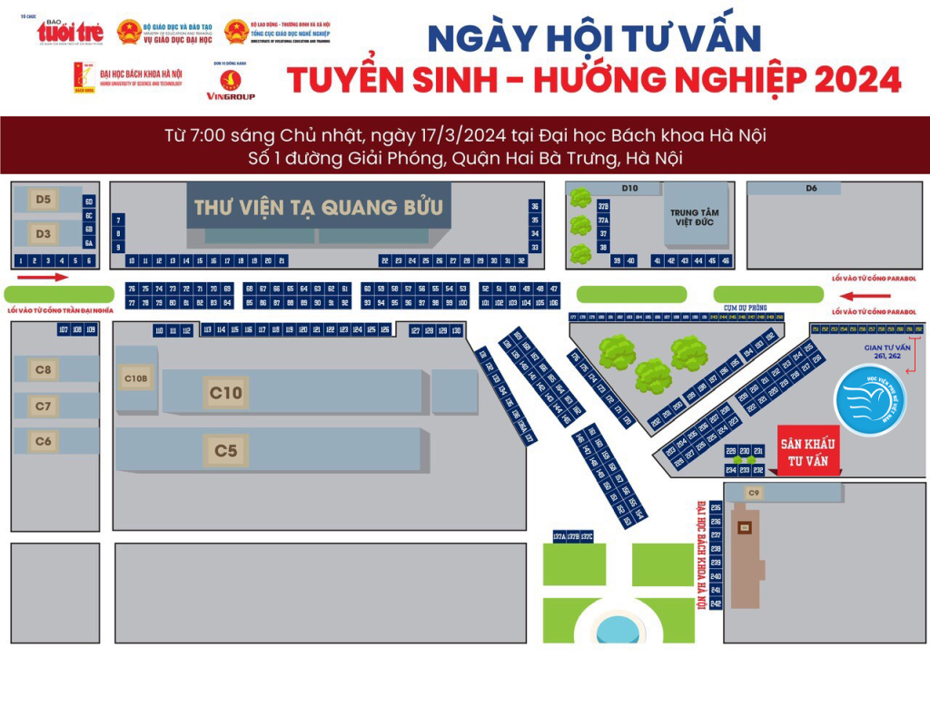 Cùng đến với gian hàng năm ở vị trí đầu tiên từ cổng parabol của Đại học Bách Khoa để cùng giao lưu với thầy cô và các anh chị sinh viên các bạn nhé. Theo dõi sơ đồ dưới đây để tìm thấy VWA tại ngày hội.