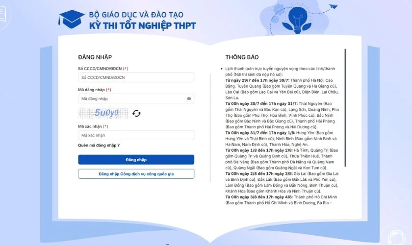 Bước 3: Nhấn nút Đăng nhập để vào hệ thống của Bộ GD&ĐT