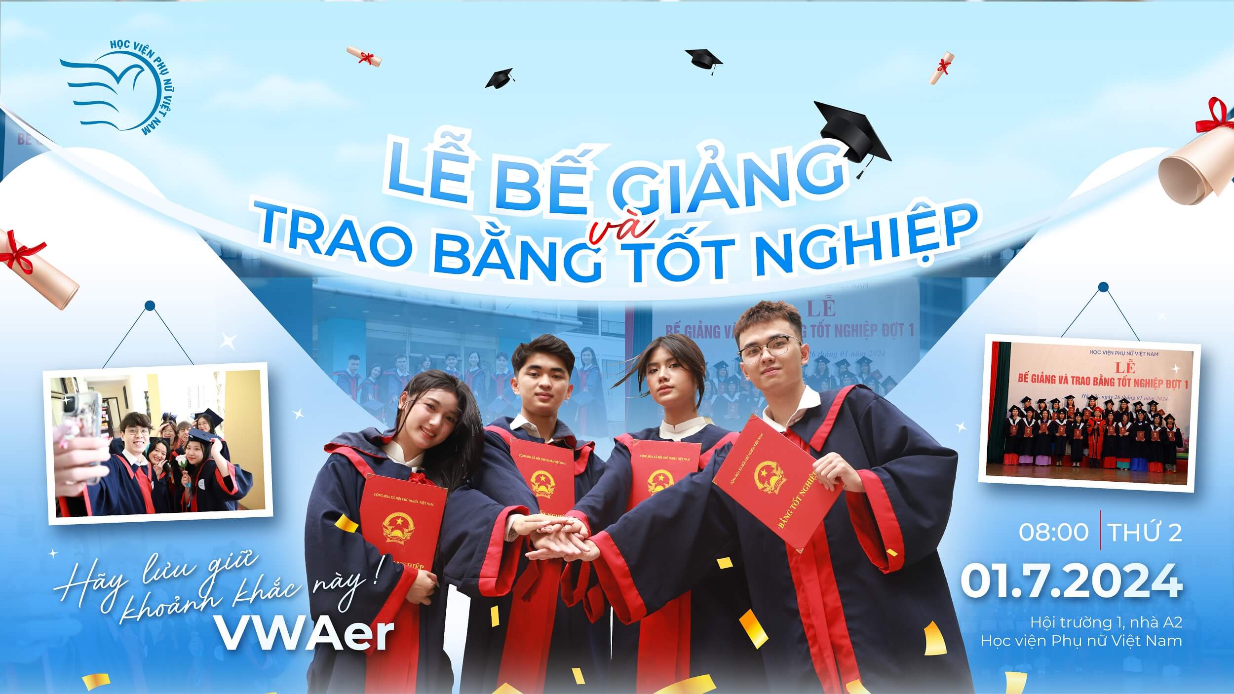 Học viện Phụ nữ Việt Nam trân trọng chào đón quý phụ huynh, các bạn học viên, sinh viên cùng đến tham dự Lễ bế giảng và trao bằng tốt nghiệp đợt 2 năm 2024 để cùng chúc mừng và nhân lên niềm vui, sự tự hào về thế hệ tương lai của đất nước.