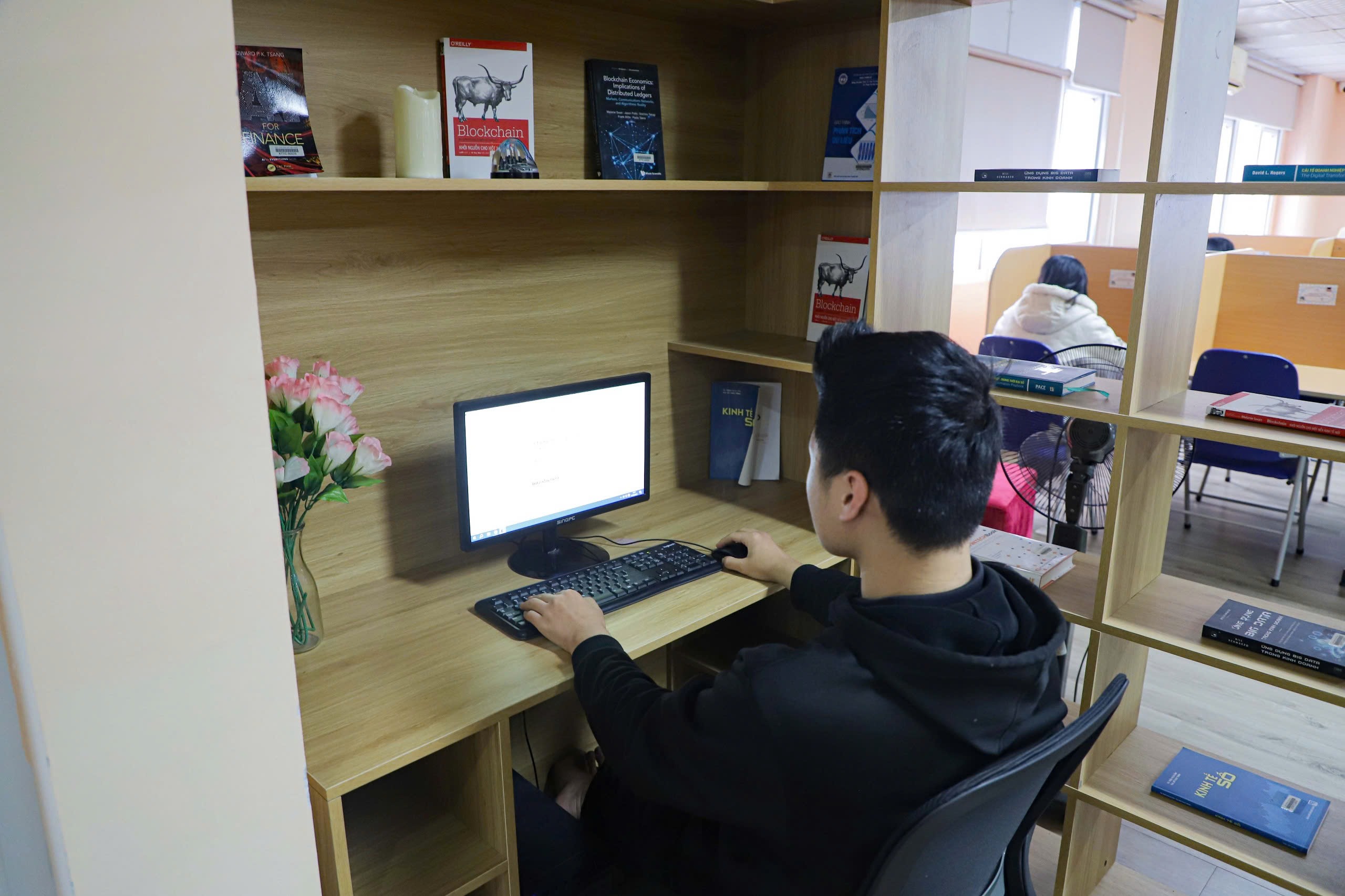Bạn Hoàng Thu Phương sinh viên ngành Quản trị kinh doanh, cho biết: “Em rất thích không gian của quầy sách này. Thiết kế vừa đẹp, hiện đại, vừa tạo cảm giác thư thái khi học tập. Đặc biệt, hệ thống tài liệu ở đây rất phong phú, có nhiều cuốn sách mà trước đây em chỉ có thể tìm trên mạng nhưng nay đã có thể đọc trực tiếp tại quầy.“