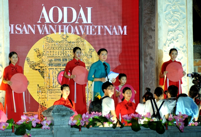 Chương trình ‘Áo dài – di sản văn hóa Việt Nam’ là chương trình nằm trong chuỗi sự kiện Áo dài – Di sản văn hóa Việt Nam do Trung ương Hội LHPN Việt Nam phối hợp với Bộ Văn hóa – Thể thao và du lịch tổ chức nhằm khẳng định và tôn vinh giá trị của áo dài trong đời sống xã hội, khơi dậy niềm tự hào dân tộc, bảo vệ, gìn giữ, phát huy giá trị di sản văn hóa Việt. 21 bộ sưu tập tham dự lần này được các nhà thiết kế lấy cảm hứng từ các di sản như: “Vịnh Hạ Long” (nhà thiết kế Nguyễn Thúy); “Hội Gióng ở đền Phù Đổng và đền Sóc” (nhà thiết kế Vũ Trần Đức Hải); “Danh thắng Tràng An”(nhà thiết kế Hùng Việt); “Tín ngưỡng thờ cúng Hùng Vương” (nhà thiết kế Minh Minh); “Cao nguyên đá Đồng Văn” (nhà thiết kế Hoài Nguyễn); “Hoàng thành Thăng Long” (nhà thiết kế Nhi Hoàng); “Ca Trù” (nhà thiết kế Hà Duy); “Tín ngưỡng thờ Mẫu” (nhà thiết kế Trần Thiện Khánh); “Hát Xoan”(nhà thiết kế Công Huân); “Dân ca Quan họ Bắc Ninh” (nhà thiết kế Trịnh Bích Thủy); “Thành nhà Hồ” (nhà thiết kế Lan Hương); “Dân ca Ví dặm Nghệ Tĩnh”(nhà thiết kế Thanh Thúy); “Vườn quốc gia Phong Nha Kẻ Bàng” (nhà thiết kế Trần Thanh Mẫn); “Đờn ca tài tử Nam Bộ” (nhà thiết kế Minh Hạnh); Quần thể di tích Cố đô Huế” (nhà thiết kế Phương Thanh); “Nhã nhạc cung đình Huế” (nhà thiết kế Ngọc Hân); “Phố cổ Hội An” (nhà thiết kế Chula); “Bài Chòi” (nhà thiết kế Cao Minh Tiến); “Thánh địa Mỹ Sơn” (nhà thiết kế Cao Duy); “Không gian văn hóa cồng chiêng Tây Nguyên” (nhà thiết kế Trung Beret); “Đờn ca tài tử Nam Bộ” (nhà thiết kế Huệ Thi).
