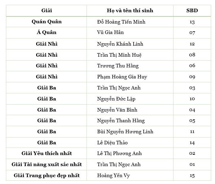 Các thí sinh xuất sắc chinh phục các giải thưởng tại Vòng Chung kết