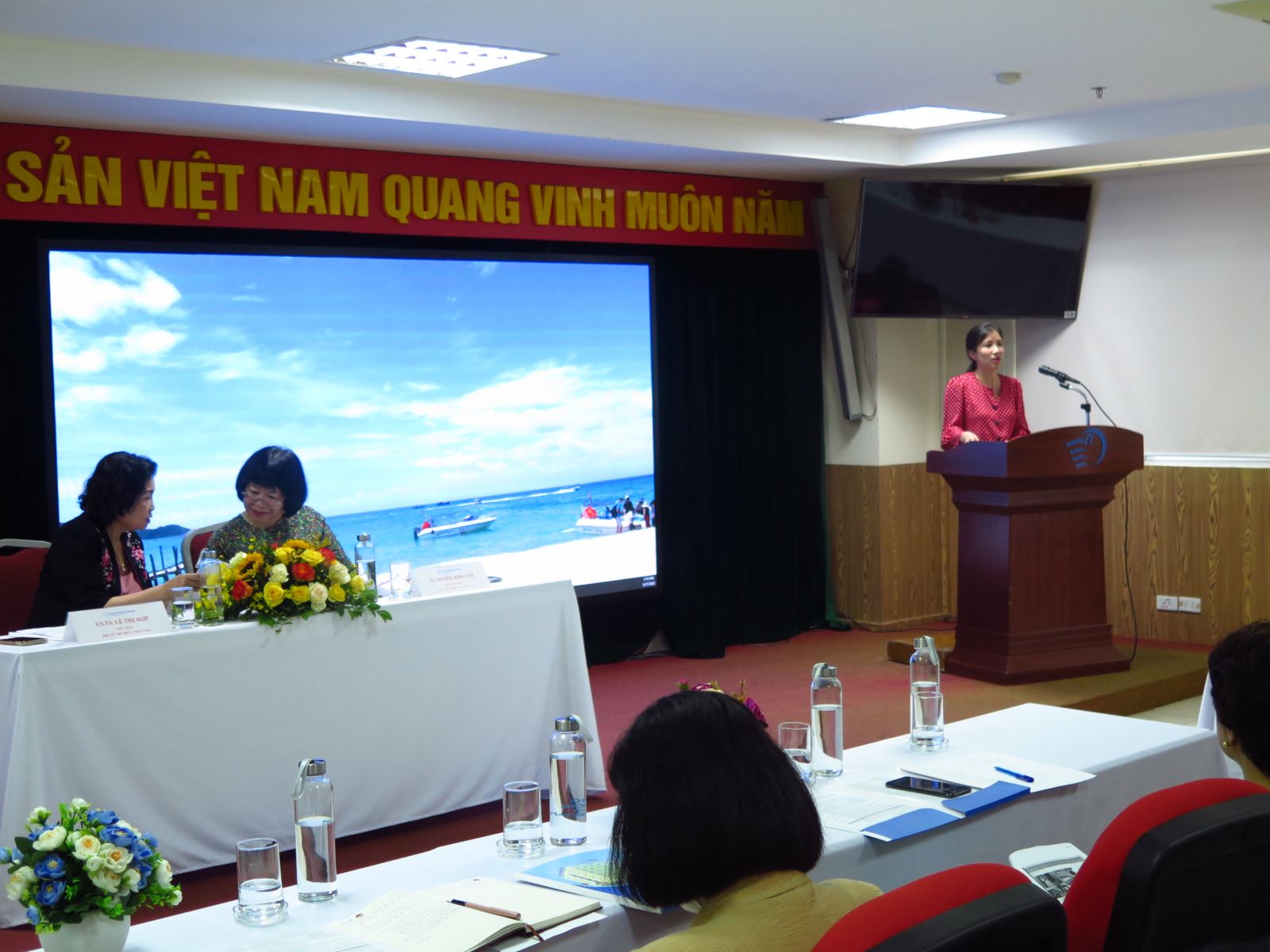 Chủ trì hội thảo là: GS.TS. Lê Thị Hợp, Chủ tịch Hội Nữ trí thức Việt Nam và TS. Dương Kim Anh, Phó Giám đốc Học viện Phụ nữ Việt Nam.