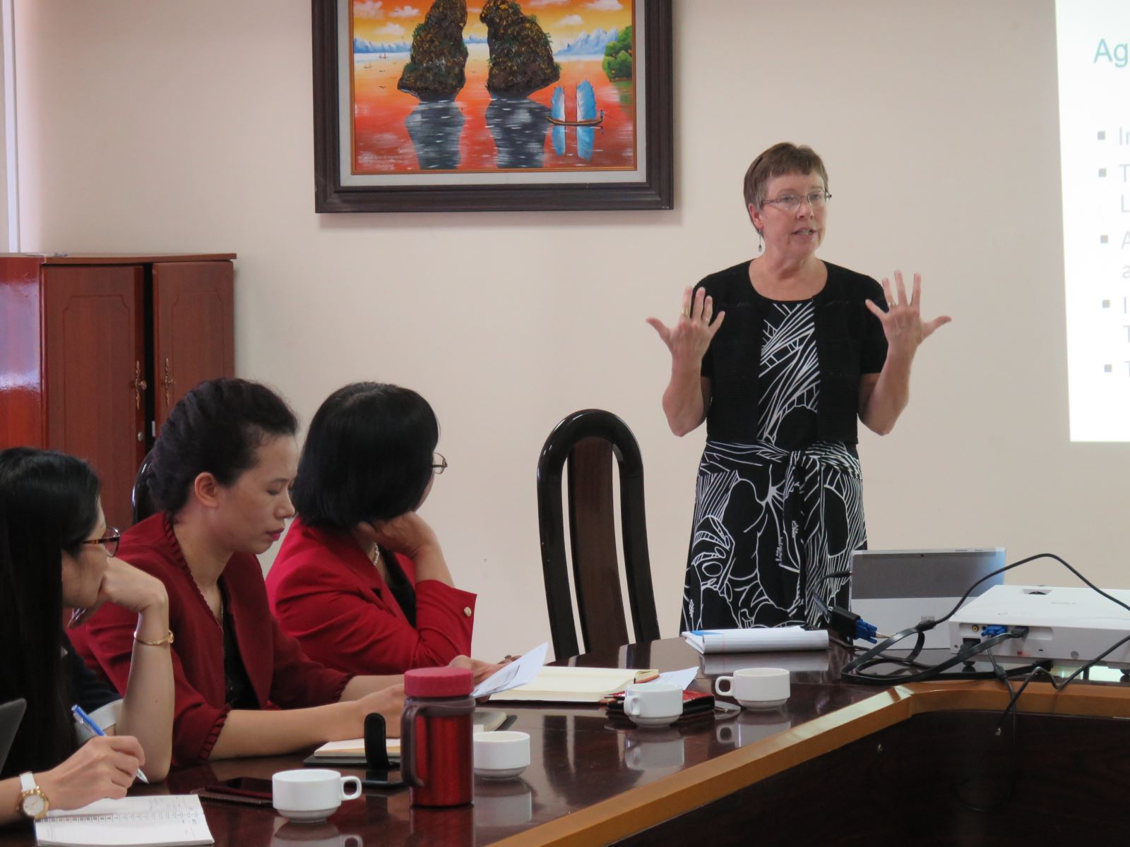 Ngoài những bài giảng về chuyên ngành Quản trị kinh doanh, cô cũng thực hiện một buổi giảng bài về “Thiết kế đánh giá tác động Giới” cho sinh viên ngành Giới và Phát triển của Học viện