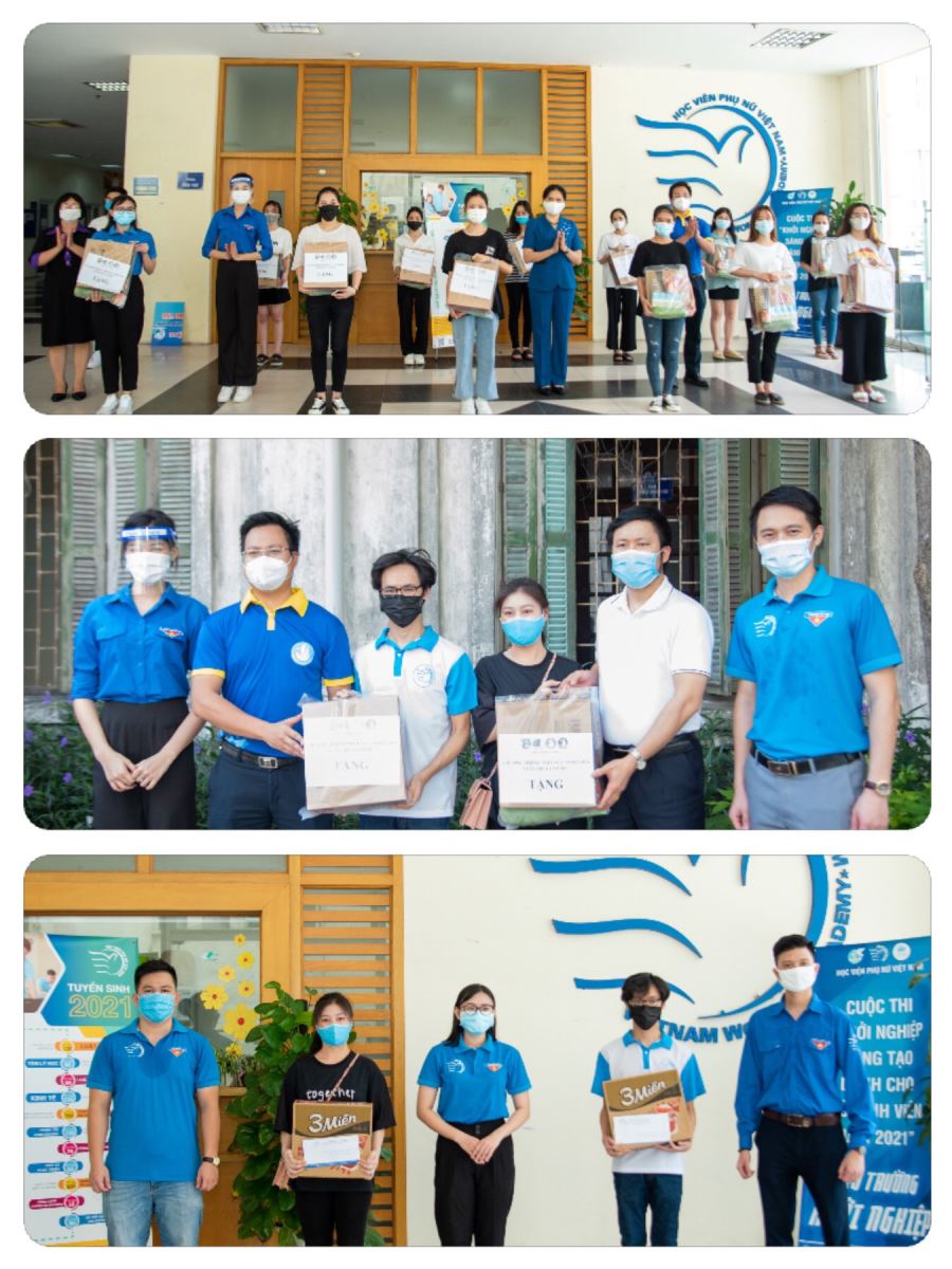 Đặc biệt, năm hoc 2021 – 2022, nhằm tiếp thêm động lực giúp sinh viên cố gắng vượt qua khó khăn do đại dịch Covid gây ra để phấn đấu học tập và rèn luyện, Học viện Phụ nữ Việt Nam đã thực hiện chuỗi chương trình hỗ trợ sinh viên bị ảnh hưởng của dịch Covid19 với tổng trị giá lên đến hơn 1 tỷ đồng bao gồm: Hỗ trợ số tiền 300.000/sinh viên đối với sinh viên đang theo học hệ đào tạo đại học chính quy; Giảm 300.000 đồng/sinh viên đang ở ký túc xá của Học viện trong thời gian giãn cách; Hỗ trợ quà hiện vật và tiền mặt 100.000 – 200.000/sinh viên cho gần 300 sinh viên hiện đang ở lại ký túc xá và sinh viên ngoại tỉnh đang ở trọ; Kết nối nhiều tổ chức, mạnh thường quân tặng quà hỗ trợ kịp thời sinh viên Học viện.