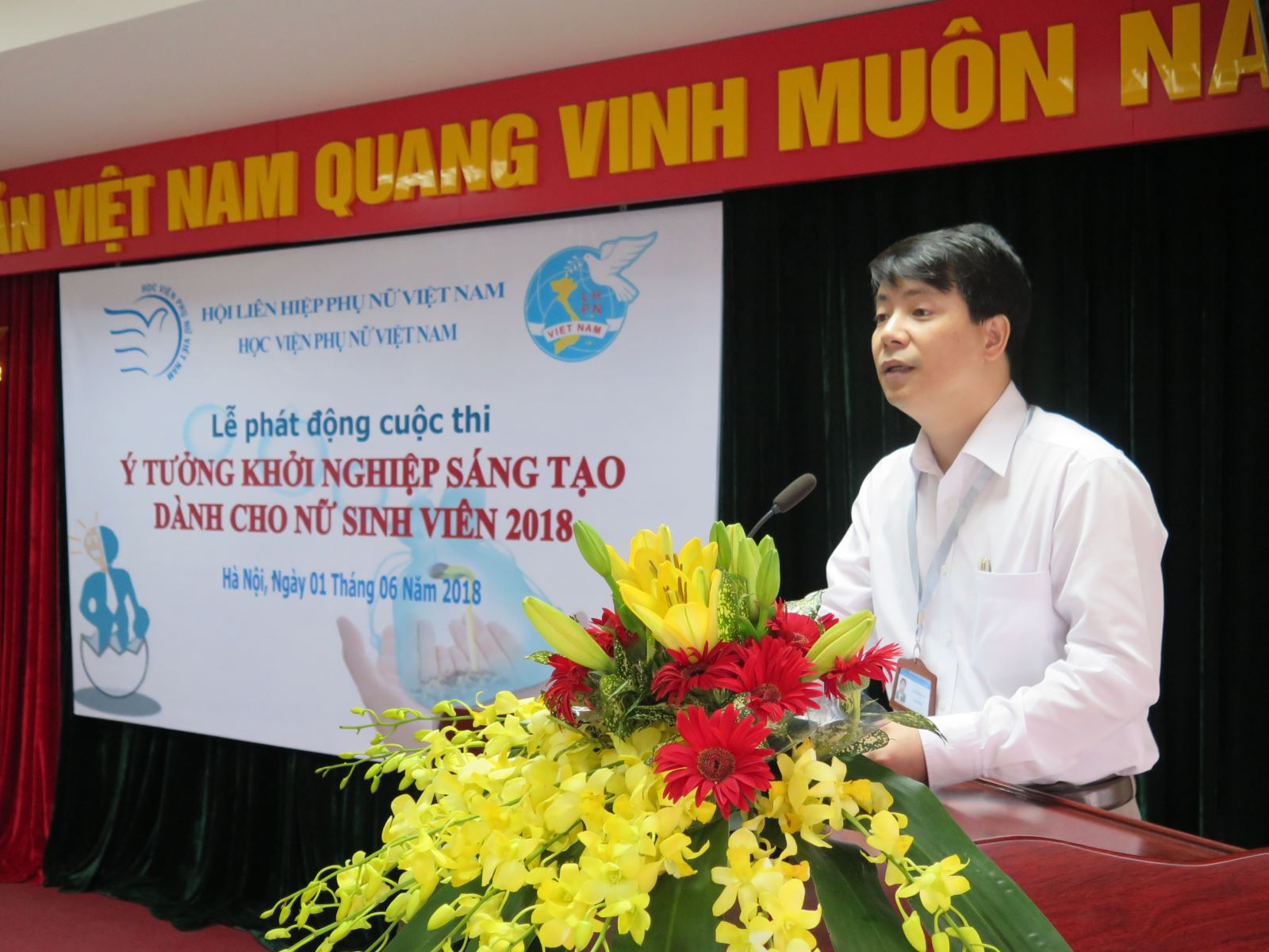 Phát biểu khai mạc TS. Trần Quang Tiến chia sẻ từ năm 2015, Học viện đã phối hợp với Trường Đại học Sydney, Australia tổ chức Cuộc thi Ý tưởng kinh doanh sáng tạo hàng năm cho sinh viên Học viện. Do vậy, kế thừa và phát huy các kinh nghiệm đã có, năm 2018, cuộc thi chính thức được lồng ghép, trở thành một trong các hoạt động thuộc Đề án Hỗ trợ phụ nữ khởi nghiệp giai đoạn 2017-2025 do Thủ tướng Chính phủ phê duyệt theo Quyết định 939/QĐ-TTg ngày 30/6/2017, Hội Liên hiệp Phụ nữ Việt Nam chủ trì thực hiện Đề án. Khác với các lần tổ chức trước đây, cuộc thi này chỉ dành cho nữ sinh và được mở rộng tới các trường đại học, cao đẳng khu vực Hà Nội và các tỉnh, thành phố lân cận với mong muốn tạo ra sự lan tỏa rộng khắp tinh thần khởi nghiệp sáng tạo cho các nữ sinh viên. Trên cơ sở đó, bày tỏ niềm tin và hy vọng với sự tham gia nhiệt tình của các trường đại học, cao đẳng, sự hướng dẫn, hỗ trợ thực hành của các doanh nhân, doanh nghiệp, cuộc thi sẽ đạt được những thành công như kỳ vọng.