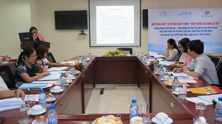 Chủ trì hội thảo là TS. Trần Quang Tiến – Giám đốc, Chủ tịch Hội đồng Khoa học và Đào tạo Học viện Phụ nữ Việt Nam. Hội thảo đã mời các đại biểu là cán bộ đại diện tổ chức UN Women, chuyên gia của Viện Khoa học Lao động & Xã hội, Đại học Khoa học xã hội & Nhân văn, Đại học Sư phạm Hà Nội, Đại học Lao động Xã hội, Học viện CTHC quốc gia Hồ Chí Minh…tham dự hội thảo.