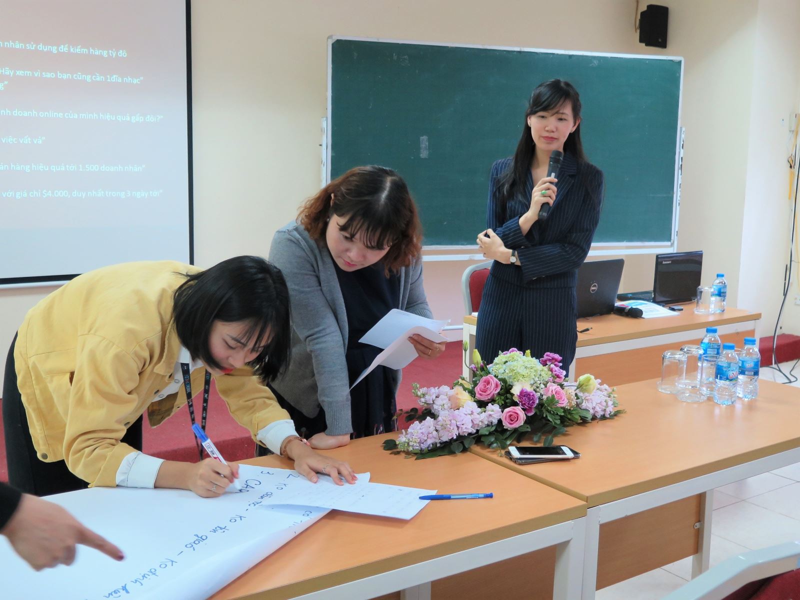 Đặc biệt, các diễn giả tập trung chia sẻ về cách viết tiêu đề và nội dung hấp dẫn khi đăng bài trên facebook. Các học viên đã hào hứng thực hành với 12 loại tiêu đề (headlines) thành công và khơi gợi trí tò mò nhất tạo nên không khí sôi nổi, hấp dẫn tại buổi tập huấn.