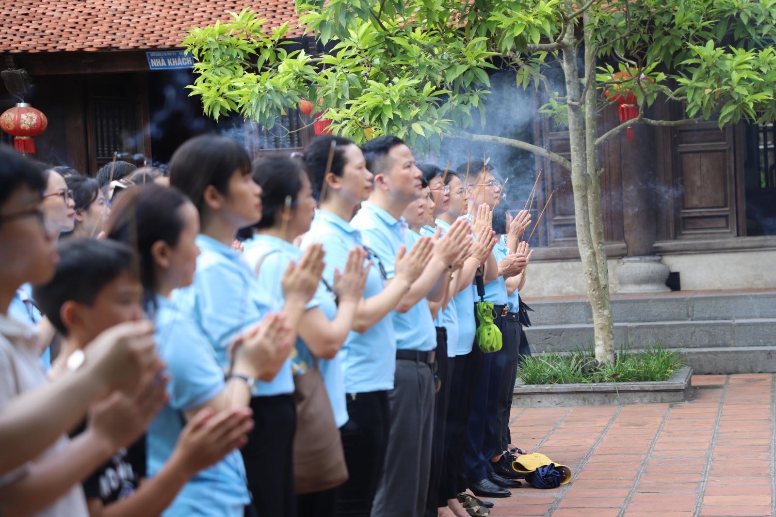 Điểm đến đầu tiên của đoàn là đền thờ bà Nguyễn Thị Duệ – Người phụ nữ đầu tiên và duy nhất đỗ tiến sĩ trong thời đại phong kiến nước nhà, được người dân ca tụng là “Bà Chúa Sao Sa”.