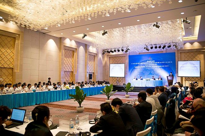 Phiên khai mạc Hội nghị ASEM về Thúc đẩy phát triển bao trùm Kinh tế và Xã hội tại Châu Á và Châu Âu (Ảnh ST)