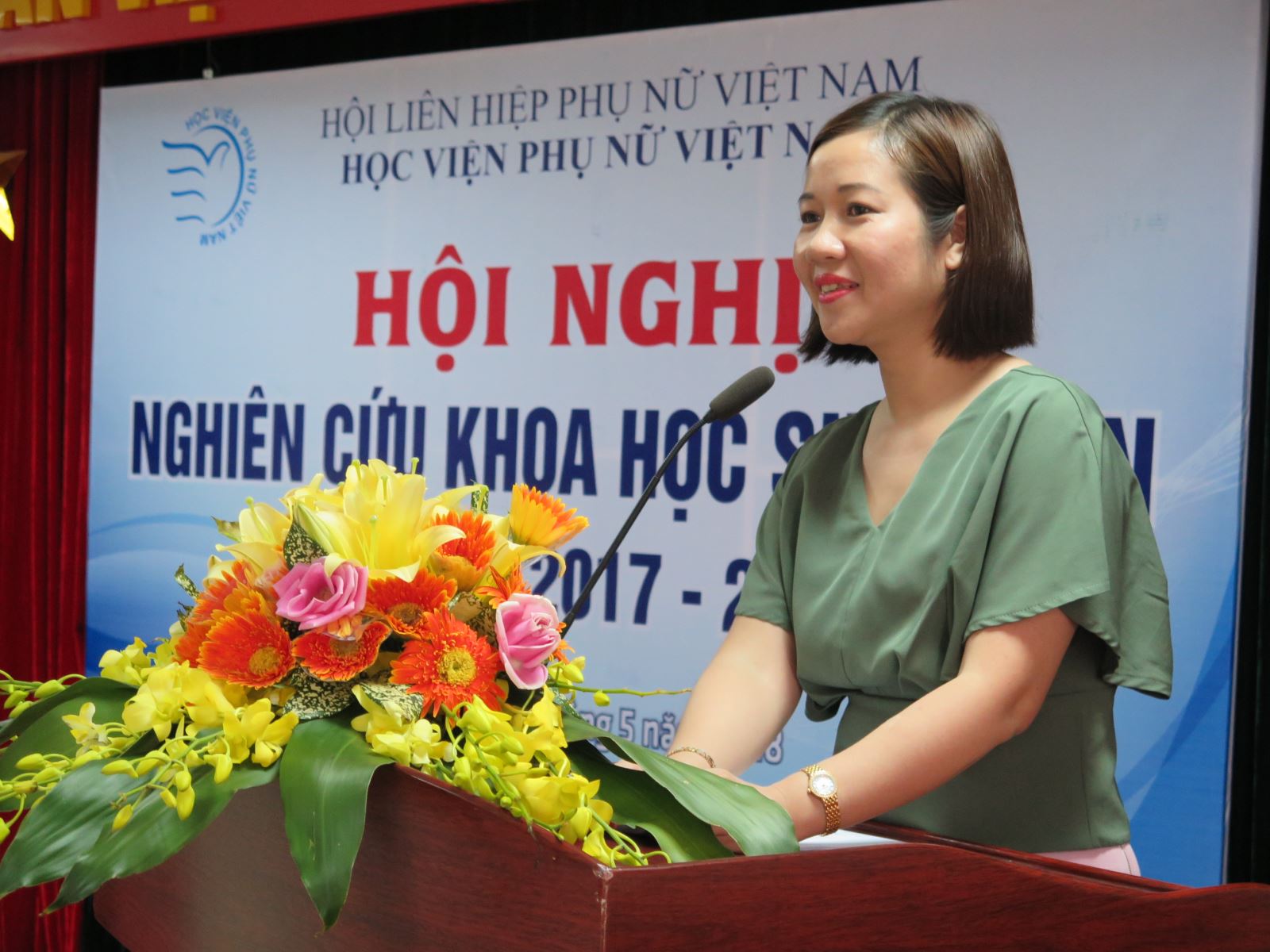 Tại hội nghị, TS. Nguyễn Thị Thanh Thủy- Phó Viện trưởng Viện Nghiên cứu Phụ nữ đã trình bày Báo cáo tổng kết hoạt động NCKH sinh viên thể hiện một số kết quả đáng khích lệ trong năm học 2017- 2018 của Học viện như: Ban hành định hướng phát triển khoa học và công nghệ Học viện Phụ nữ Việt Nam giai đoạn 2018 – 2020, tổ chức các đợt xét chọn và nghiệm thu đề tài NCKH sinh viên cấp Học viện; chất lượng đề tài NCKH sinh viên không ngừng được cải thiện, Học viện đã đưa môn Phương pháp NCKH vào chương trình học bắt buộc trong nhà trường và cung cấp các kĩ năng, kĩ thuật nghiên cứu tại các tuần học kỹ năng mềm cho sinh viên.