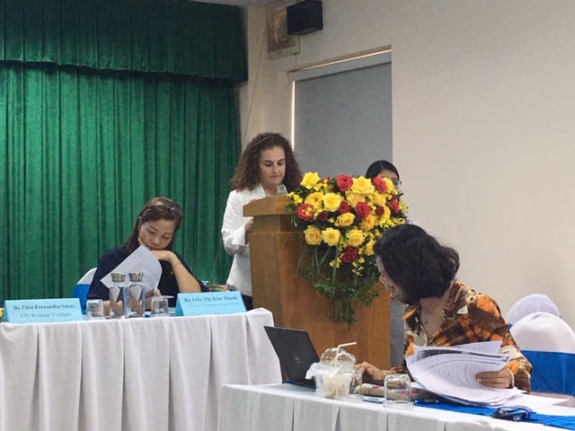 Bà Elisa Fernandez, trưởng đại diện UN Women Việt Nam phát biểu tại hội thảo