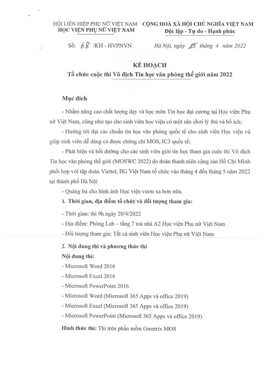 Kế hoạch tổ chức cuộc thi Vô địch Tin học thế giới