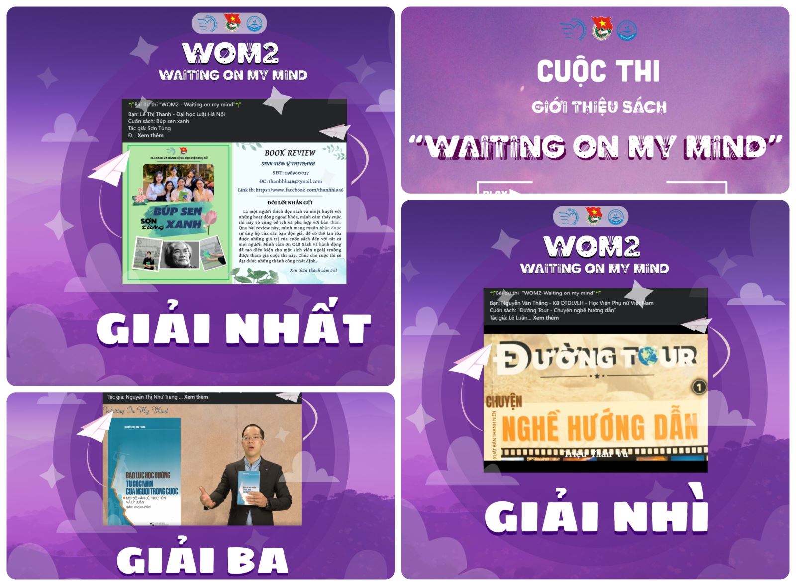 Câu lạc bộ Sách và Hành động Học viện Phụ nữ Việt Nam xin gửi lời chúc mừng tới các bạn sinh viên, học viên đã đạt được giải thưởng của cuộc thi. Ngoài ra, Câu lạc bộ cũng gửi lời cảm ơn tới tất cả các bạn đã gửi bài dự thi cuộc thi Giới thiệu sách: WOM2 – WAITING ON MY MIND. Rất mong chờ sự tham gia của các bạn ở những cuộc thi tiếp theo.