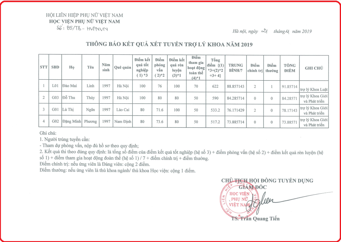 Tin tứcKết quả xét tuyển trợ lý Khoa Luật; Giới & phát triển Posted on Tháng Mười Một 21, 2019 by admin(full) 21 Th11 admin(full) Sôi động Chung kết Tiếng hát sinh viên Học viện Phụ nữ Việt Nam Thông báo xét duyệt Đề tài NCKH của sinh viên 2019