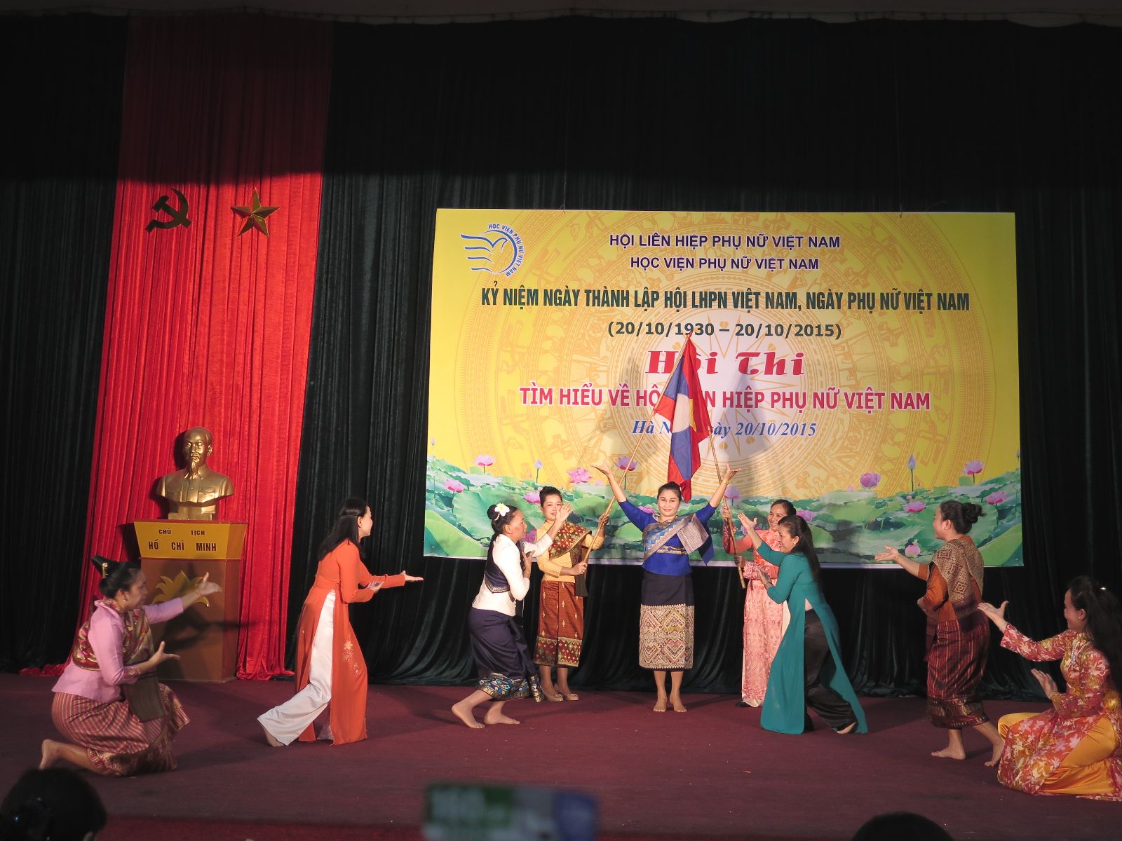 Điểm thêm sắc màu đặc biệt cho buổi lễ là các tiết mục đậm đà bản sắc của các cán bộ Hội LHPN Lào. Những lời ca, điệu múa ca ngợi tình đoàn kết hữu nghị giữa hai nước Việt – Lào đã để lại ấn tượng sâu sắc cho người xem.