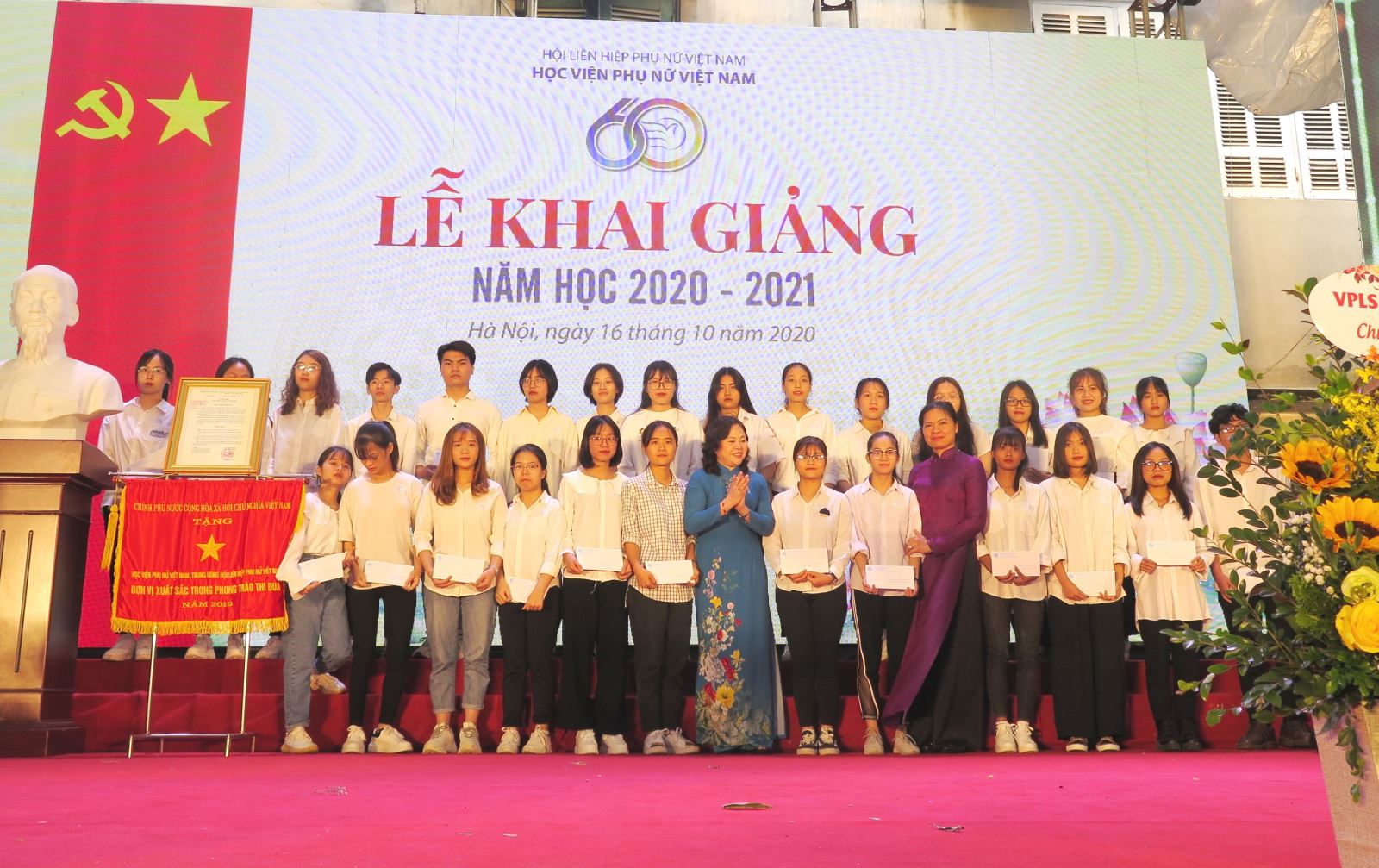 Chủ tịch Hội LHPN Việt Nam và Thứ trưởng Bộ GD & ĐT trao học bổng cho các tân cử nhân của HV