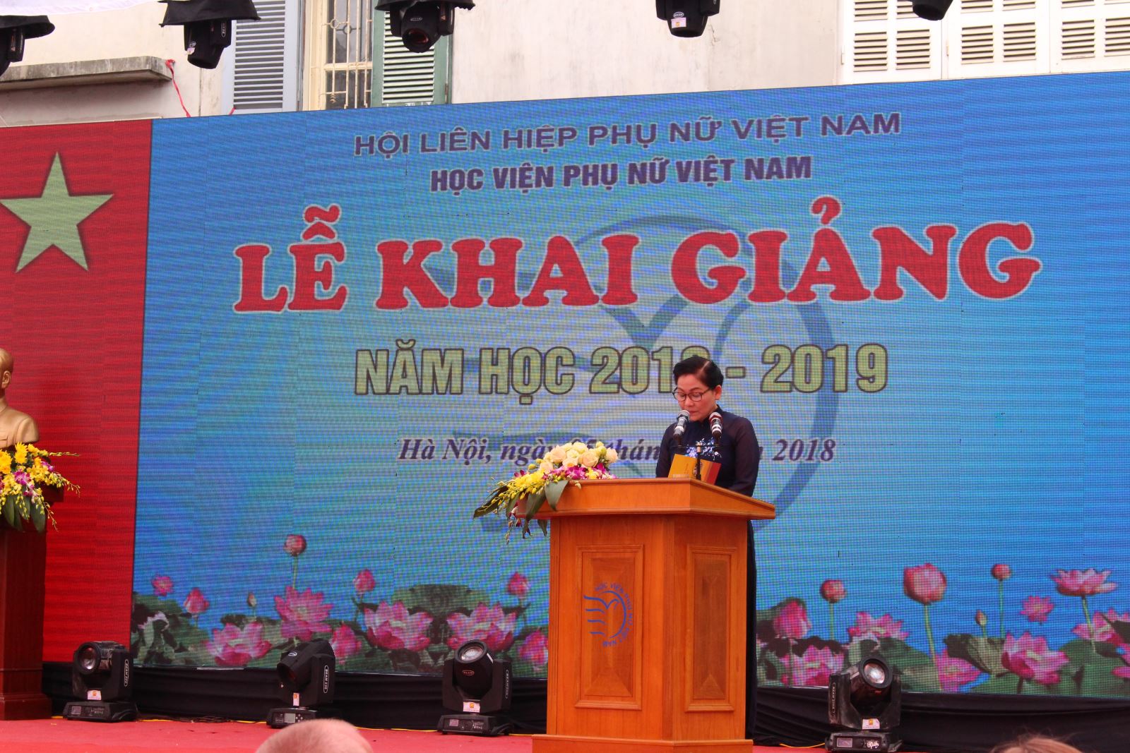Thay mặt Đoàn Chủ tịch TW Hội LHPN Việt Nam, Phó Chủ tịch Trần Thị Hương phát biểu chỉ đạo và chúc mừng Học viện