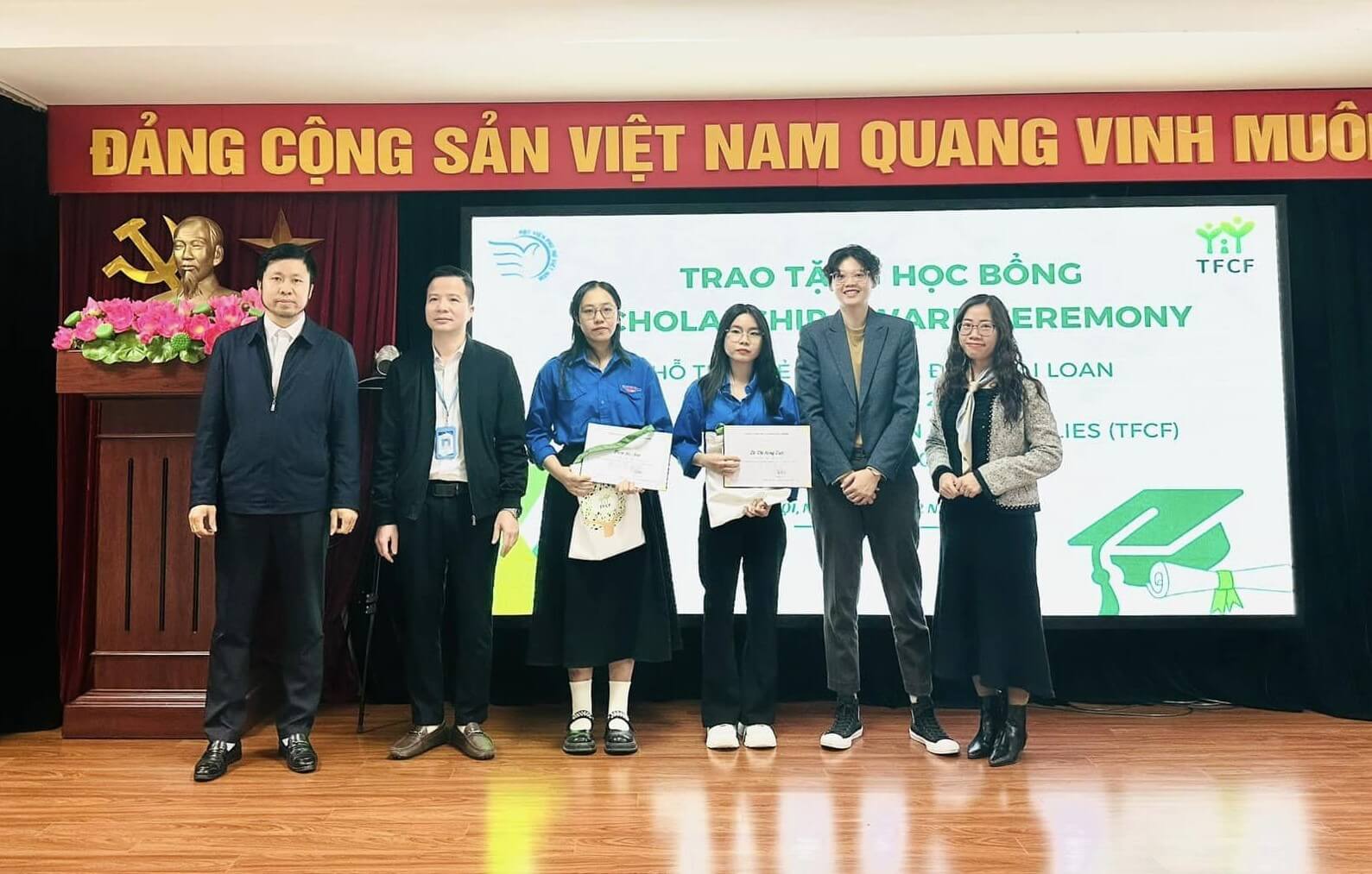 Cũng trong buổi sáng cùng ngày, nhân dịp sự kiện Tổng kết công tác Đoàn Thanh niên Học viện năm 2023, tổ chức TFCF đã trao 02 suất học bổng với tổng trị giá 15 triệu đồng cho 02 sinh viên: Đỗ Thị Hồng Tươi – Ngành CTXH và Phạm Hải Anh – Song ngành Luật và Giới.