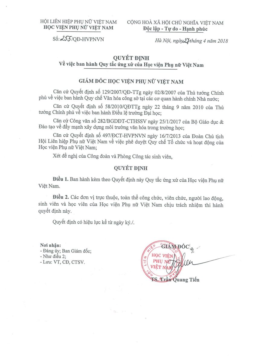 Tin tứcQuyết định Ban hành Quy tắc ứng xử Học viện Posted on Tháng Năm 4, 2018 by admin(full) 04 Th5 Mời bạn đọc xem chi tiết Quy tắc ứng xử của Học viện TẠI ĐÂY admin(full) Công bố Danh sách sinh viên đạt học bổng khuyến khích Học kỳ I năm học 2017 – 2018 Kết quả đánh giá rèn luyện sinh viên khóa II và bổ sung kết quả rèn luyện sinh viên khóa V
