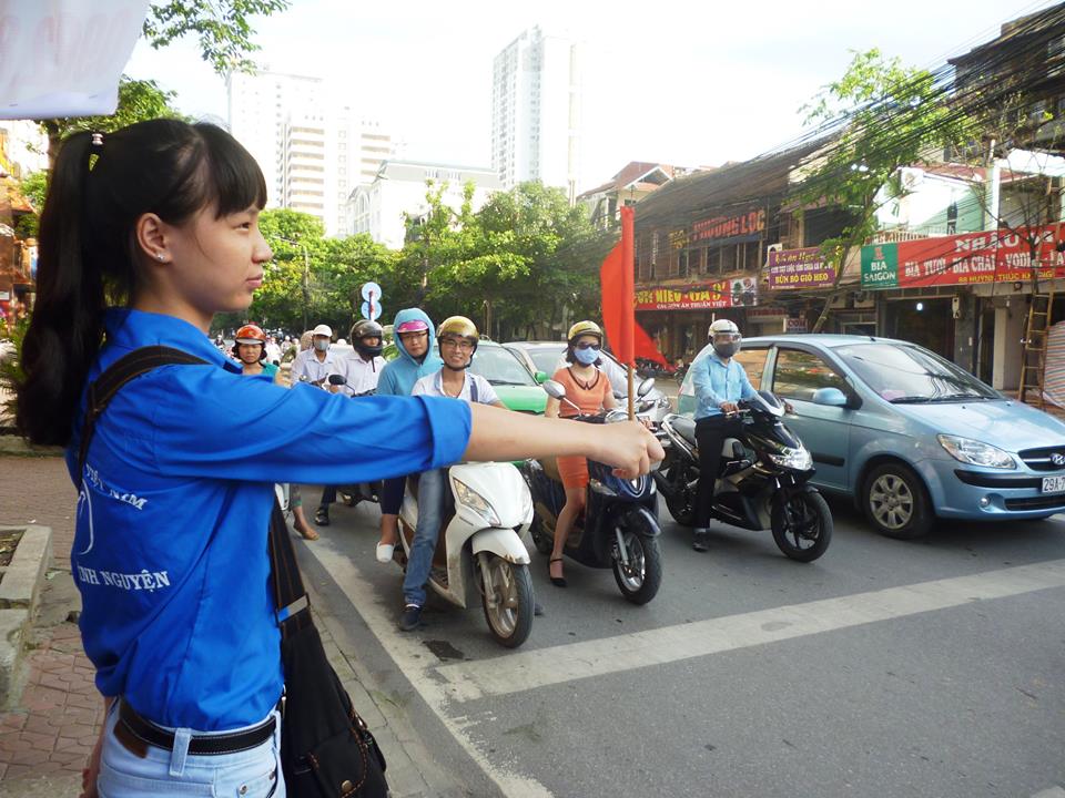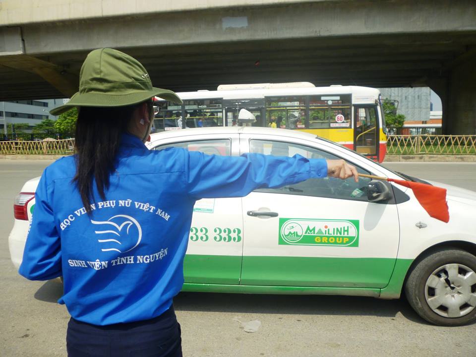 Sinh viên HVPNVN tham gia điều tiết giao thông trong đợt ra quân Tiếp sức mùa thi 2015