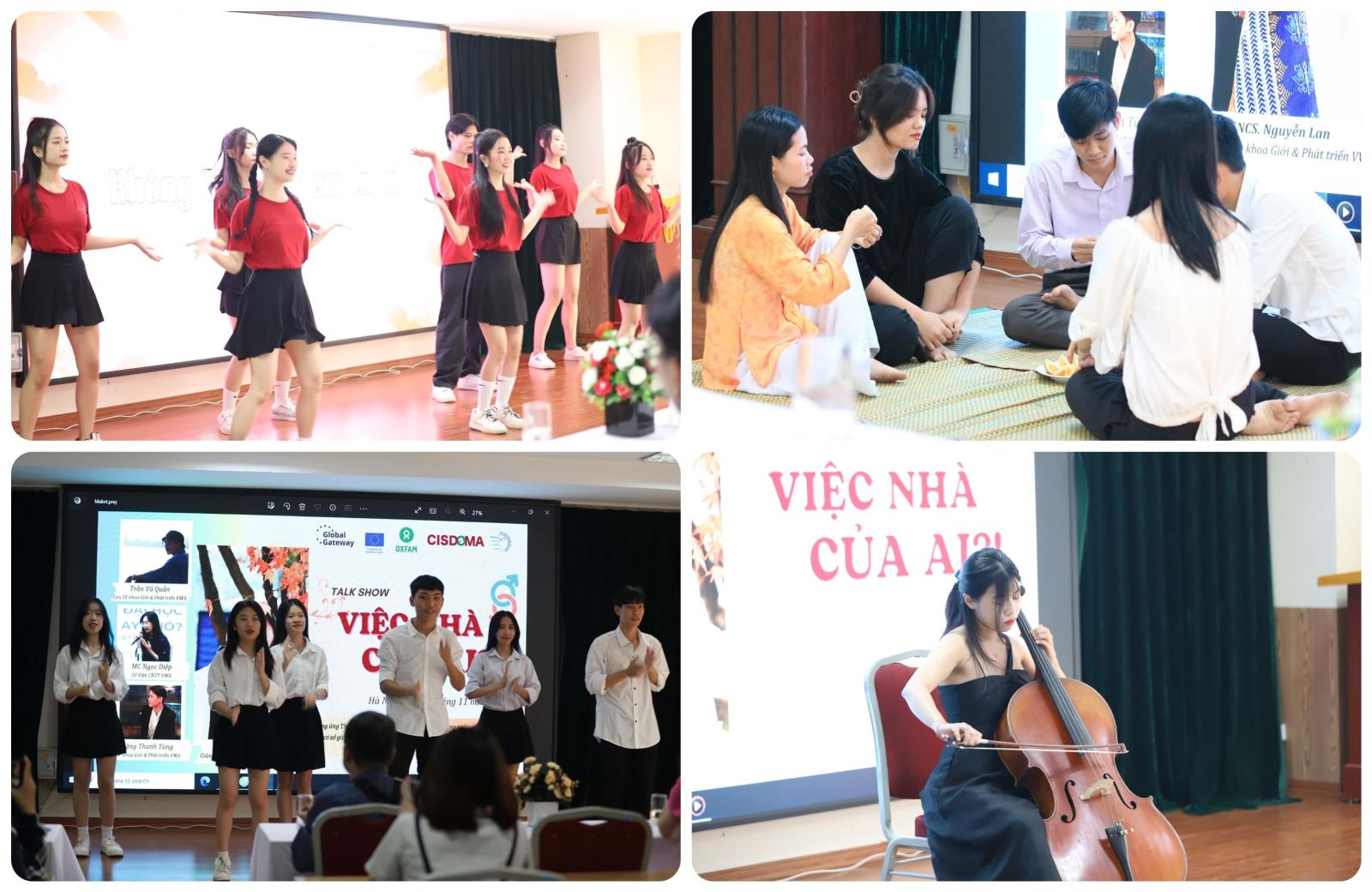 Mở đầu chương trình là những tiết mục văn nghệ sôi động, ý nghĩa với những nội dung hướng tới việc cân bằng giới trong gia đình và ngoài xã hội. Đặc biệt, với sự sáng tạo, tài năng và thấu hiểu, các bạn sinh viên đã diễn một tiểu phẩm mang tên Việc nhà của ai? mang ý nghĩa sâu sắc, đặt ra những suy tư cho khán giả về tầm quan trọng của việc sẻ chia, giải quyết việc nhà.
