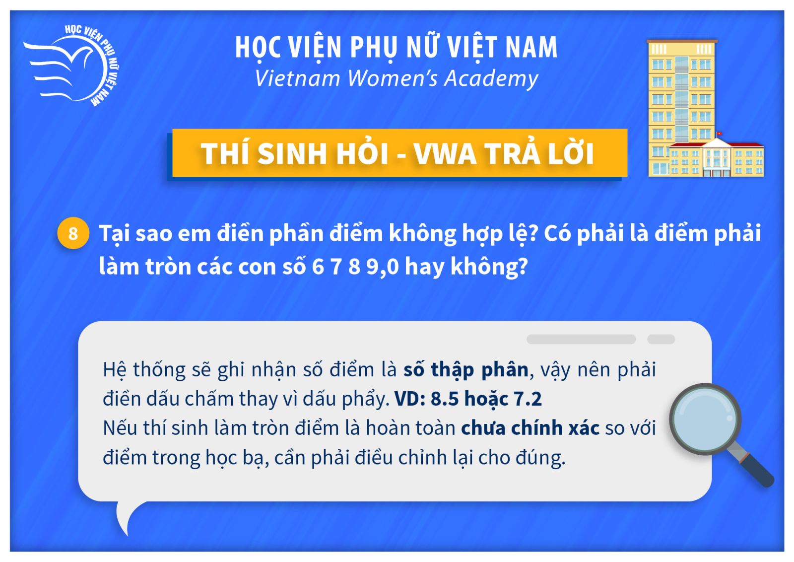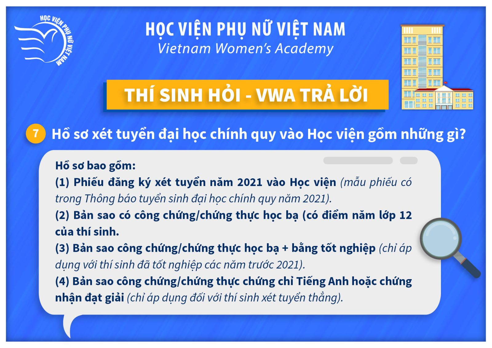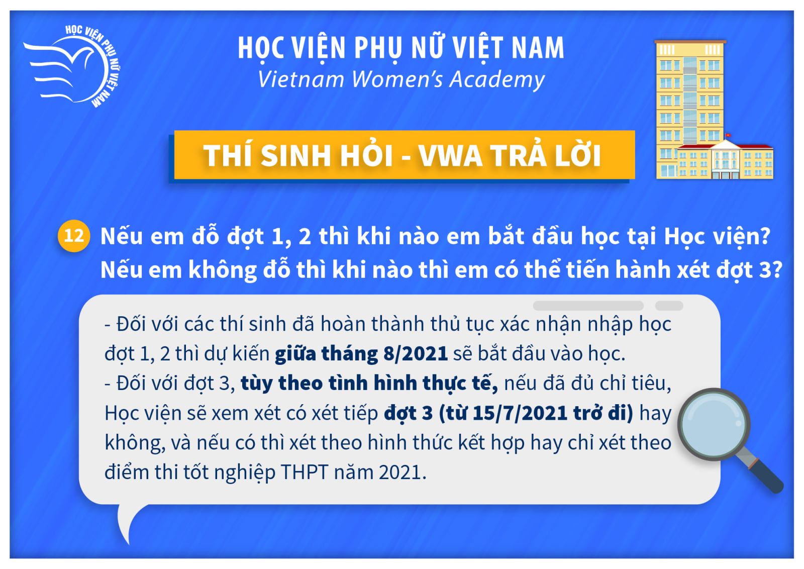 Tin tứcThí sinh hỏi – VWA trả lời (P2) Posted on Tháng Bảy 11, 2021 by admin(full) 11 Th7 admin(full) Lưu ý mốc thời gian tuyển sinh quan trọng năm 2021 Thông báo thi chuẩn đầu ra Tiếng Anh đợt 3 năm học 2020-2021