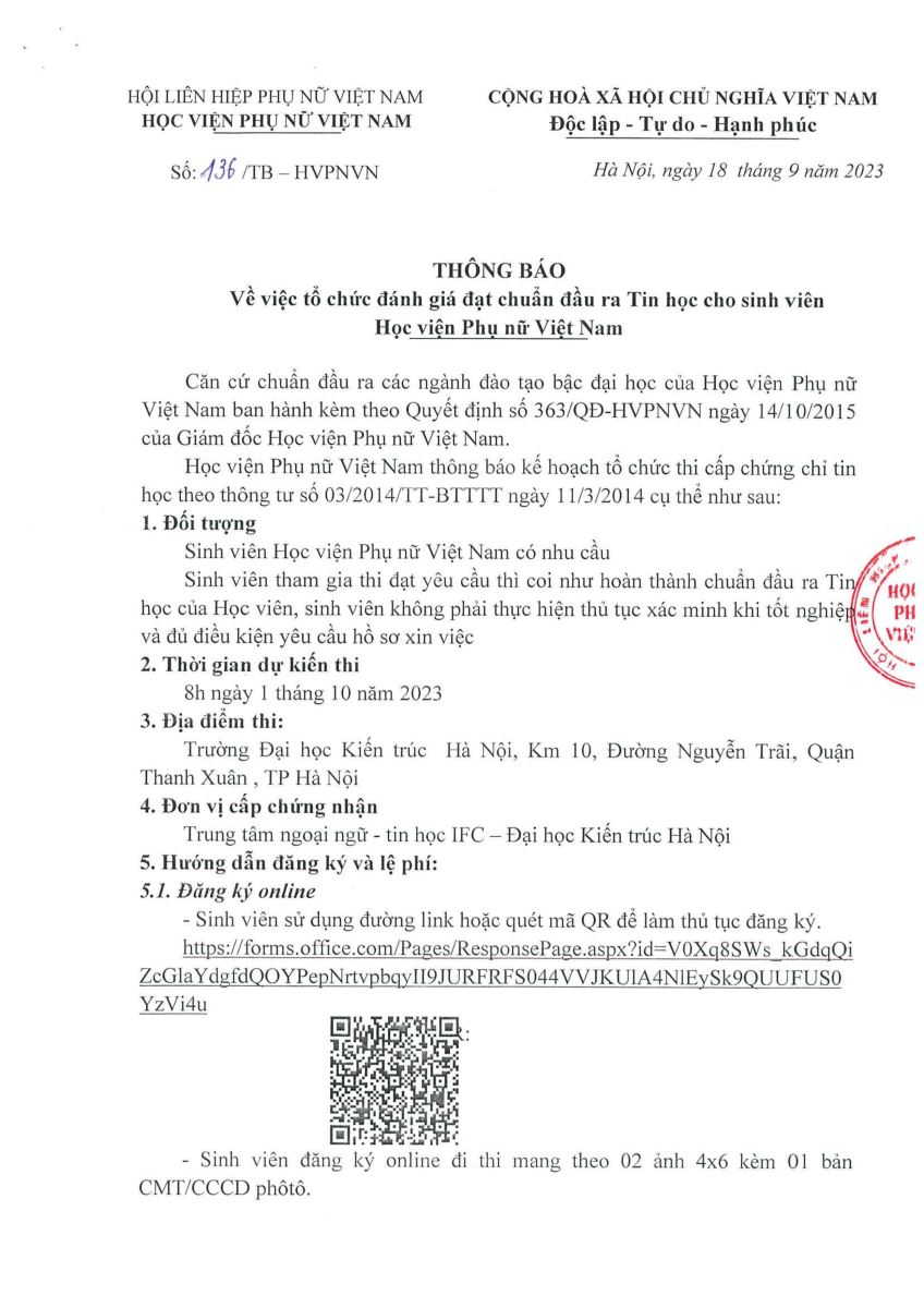 Tin tứcThông báo lịch đánh giá chuẩn đầu ra Tin học dành cho sinh viên Posted on Tháng Chín 20, 2023 by admin(full) 20 Th9 Mời bạn đọc có nhu cầu đăng ký TẠI ĐÂY admin(full) Học viện Phụ nữ Việt Nam làm việc với Trung tâm phát triển Giáo dục EDC (VP vùng tại Thái Lan) Kết quả họp Hội đồng đánh giá rèn luyện sinh viên Học kỳ II, năm học 2022 – 2023