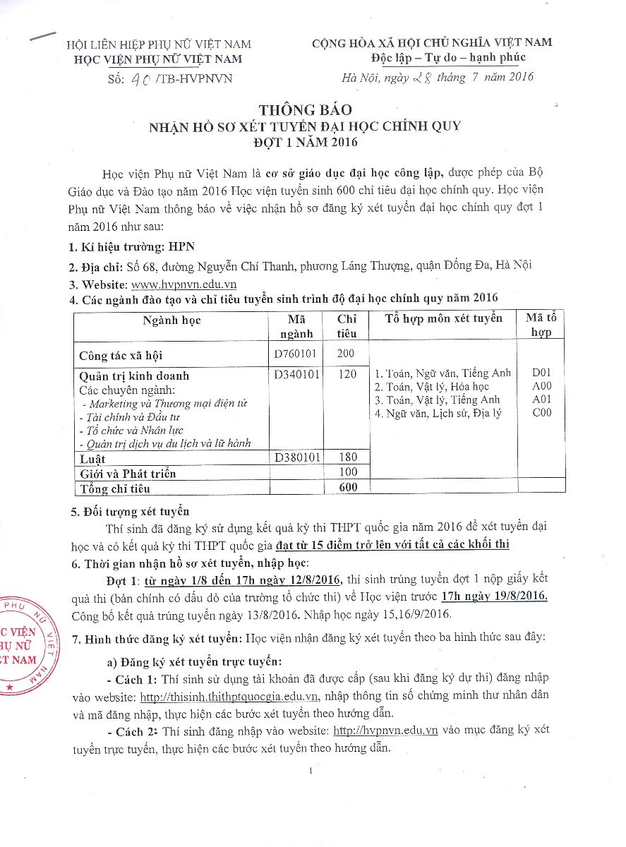 Tin tứcTHÔNG BÁO NHẬN HỒ SƠ XÉT TUYỂN ĐẠI HỌC 2016 Posted on Tháng Bảy 28, 2016 by admin(full) 28 Th7 Tải Mẫu phiếu đăng ký xét tuyển TẠI ĐÂY admin(full) Quy định xét, cấp học bổng cho sinh viên đại học hệ chính quy Đoàn Thanh niên Học viện Phụ nữ Việt Nam dâng hương tại Nghĩa trang liệt sỹ tỉnh Thừa Thiên Huế
