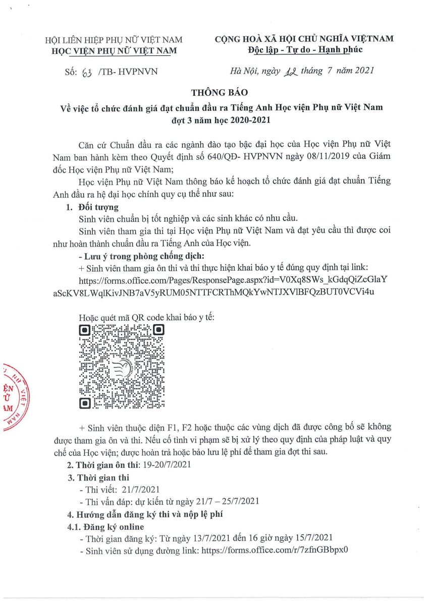 Tin tứcThông báo thi chuẩn đầu ra Tiếng Anh đợt 3 năm học 2020-2021 Posted on Tháng Bảy 12, 2021 by admin(full) 12 Th7 MỜI BẠN ĐỌC ĐĂNG KÝ THI CHUẨN ĐẦU RA TIẾNG ANH TẠI ĐÂY HOẶC ĐĂNG KÝ BẰNG MÃ QR TRONG THÔNG BÁO. admin(full) Thí sinh hỏi – VWA trả lời (P1) THÔNG BÁO ĐIỂM ĐẠT NGƯỠNG XÉT TUYỂN HỌC BẠ ĐỢT II/2021