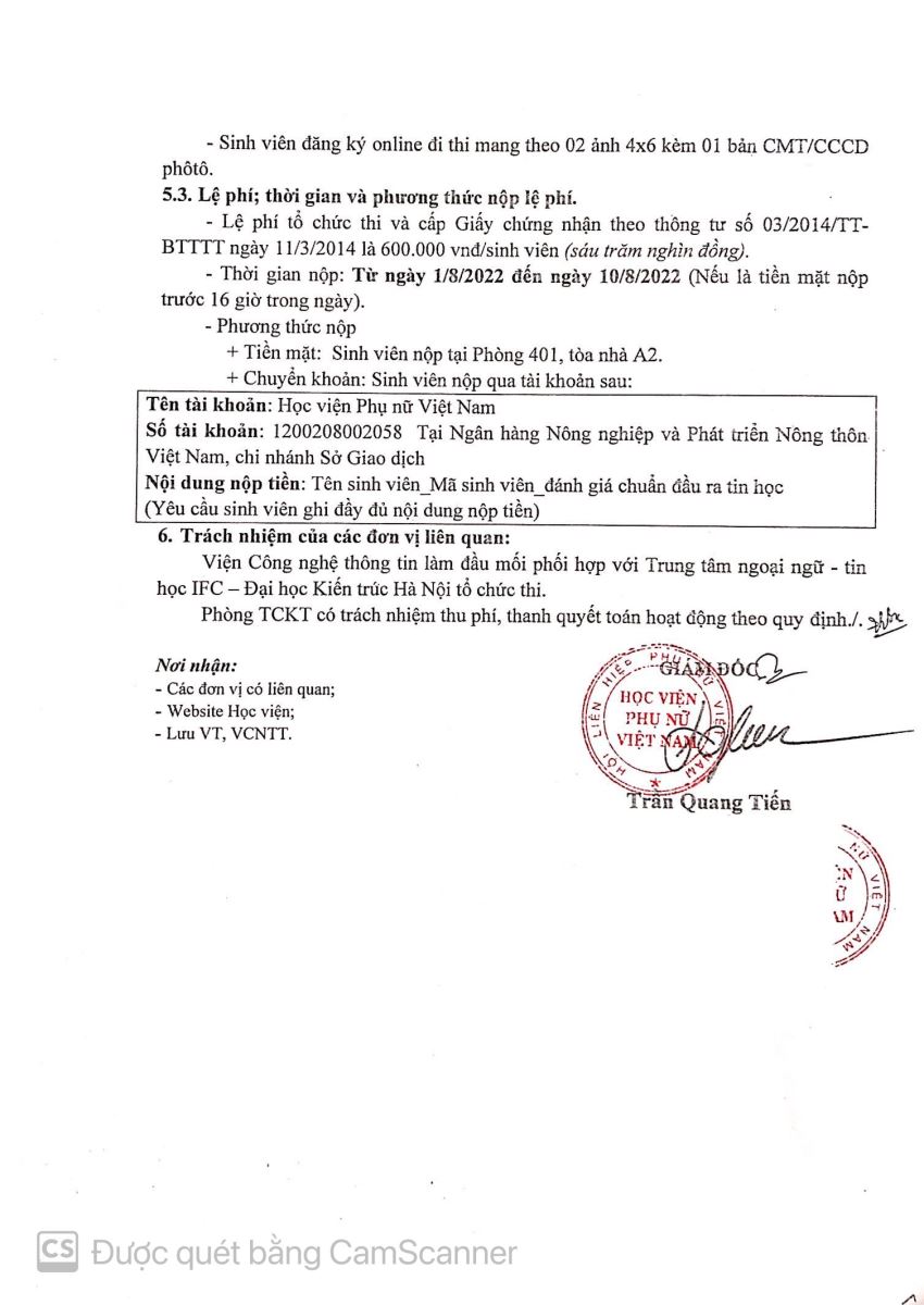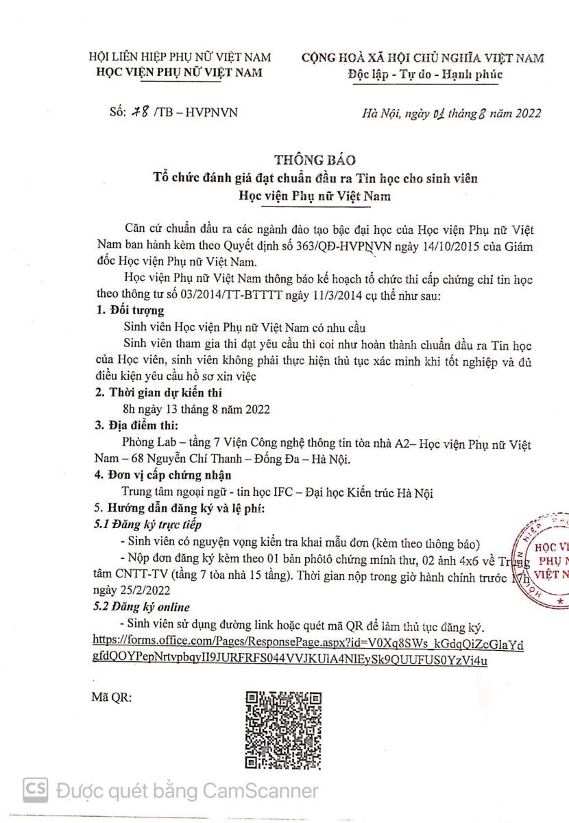 Thông báo thi Tin học chuẩn đầu ra tháng 8/2022