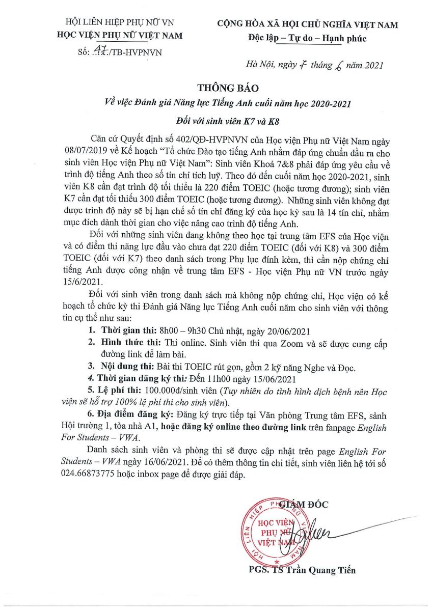 Thông báo về việc đánh giá năng lực Tiếng Anh đối với SV K7 và K8