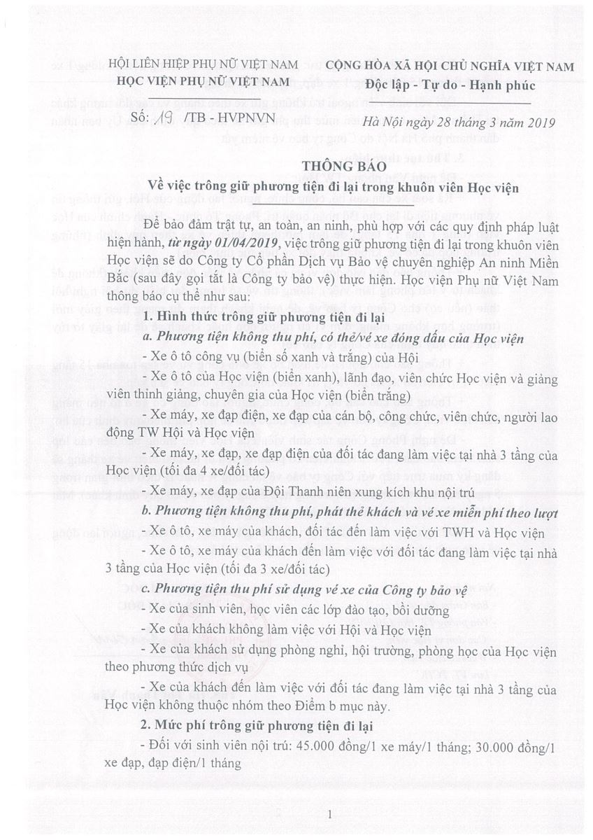 Tin tứcThông báo về việc trông giữ phương tiện đi lại trong khuôn viên Học viện Posted on Tháng Ba 28, 2019 by admin(full) 28 Th3 admin(full) Kế hoạch tổ chức tuần sinh hoạt kỹ năng mềm Quyết định về việc sinh viên được hưởng chế độ chính sách HKII, năm học 2018 – 2019
