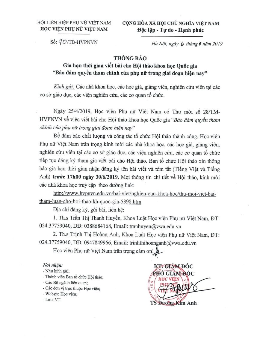 Tin tứcThông tin gia hạn thời gian viết bài tham dự hội thảo KHQG Posted on Tháng Sáu 7, 2019 by admin(full) 07 Th6 admin(full) Học viện Phụ nữ Việt Nam giao lưu với đoàn đại biểu trường Cegep Limoilou, Canada Gia hạn thời gian nhận hồ sơ tuyển dụng năm 2019