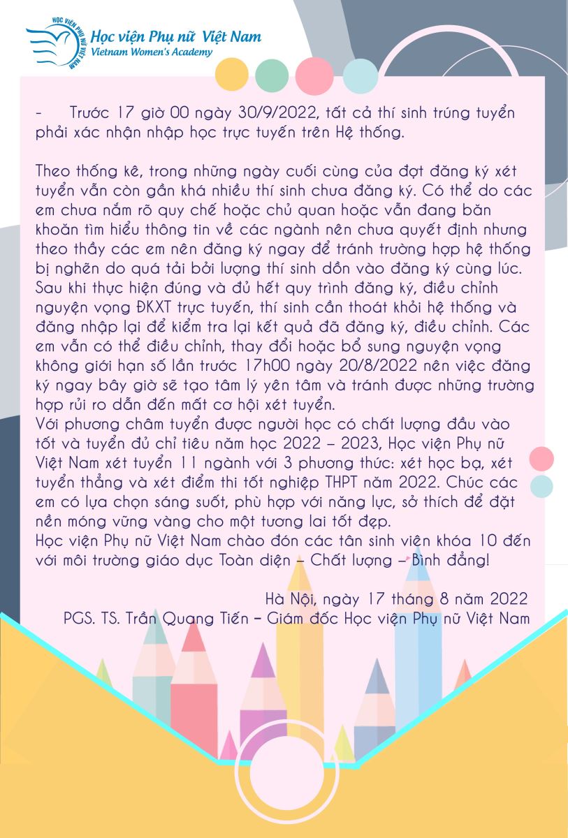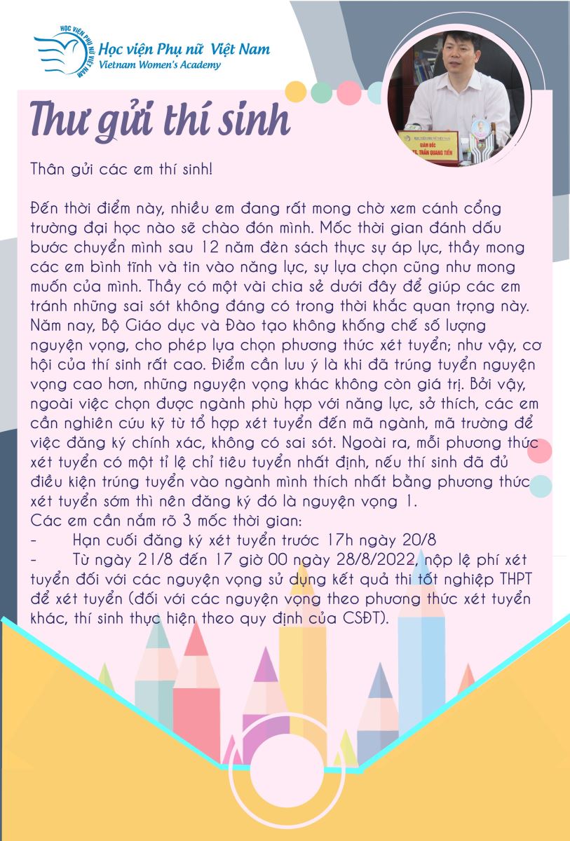 Thư gửi các thí sinh xét tuyển ĐH 2022