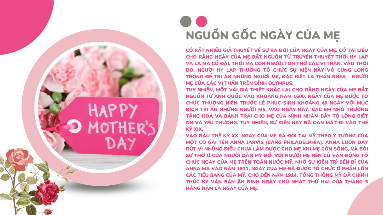 Ngày của mẹ, hay Mother’s day, thường được tổ chức vào ngày Chủ nhật thứ 2 của tháng Năm, là dịp để chúng ta tôn vinh người mẹ, đấng sinh thành, dưỡng dục của mỗi người. Năm 2023, ngày của Mẹ là ngày Chủ nhật 14/5.