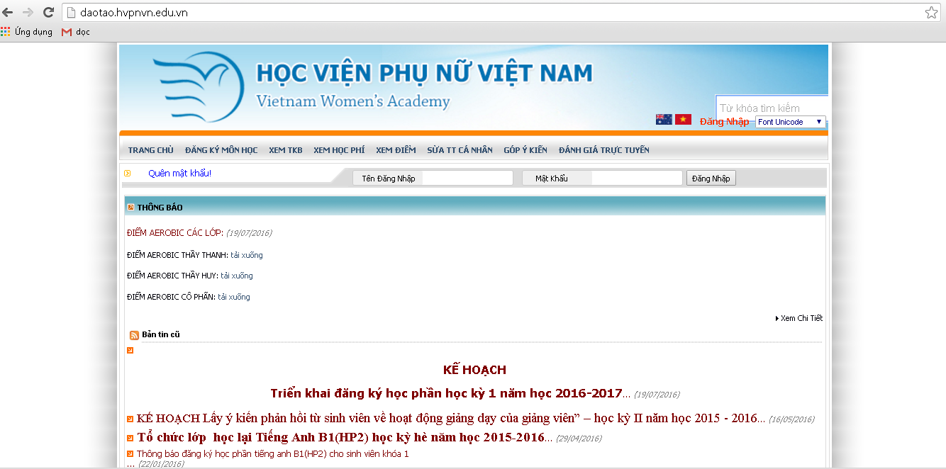 Cổng thông tin đào tạo có chức năng cung cấp thông tin về Chương trình đào tạo, Chương trình khung, Kế hoạch học tập, Thời khóa biểu cùng những thông tin mới nhất về các vấn đề liên quan đến việc học tập tại Học viện Phụ nữ Việt Nam của sinh viên.