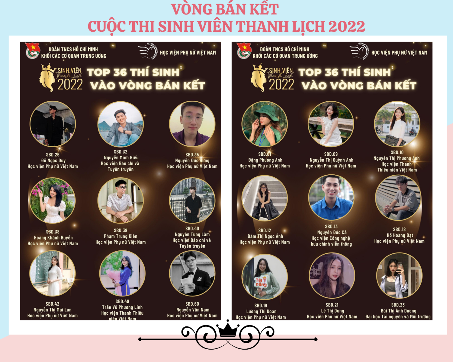 Trải qua vòng sơ khảo, 36 thí sinh xuất sắc đến từ Học viện Phụ nữ Việt Nam, Học viện Công nghệ Bưu chính viễn thông, Học viện Báo chí và tuyên truyền, Học viện Thanh thiếu niên Việt Nam, Đại học Tài nguyên môi trường, Đại học Nội vụ Hà Nội bước vào vòng bán kết.