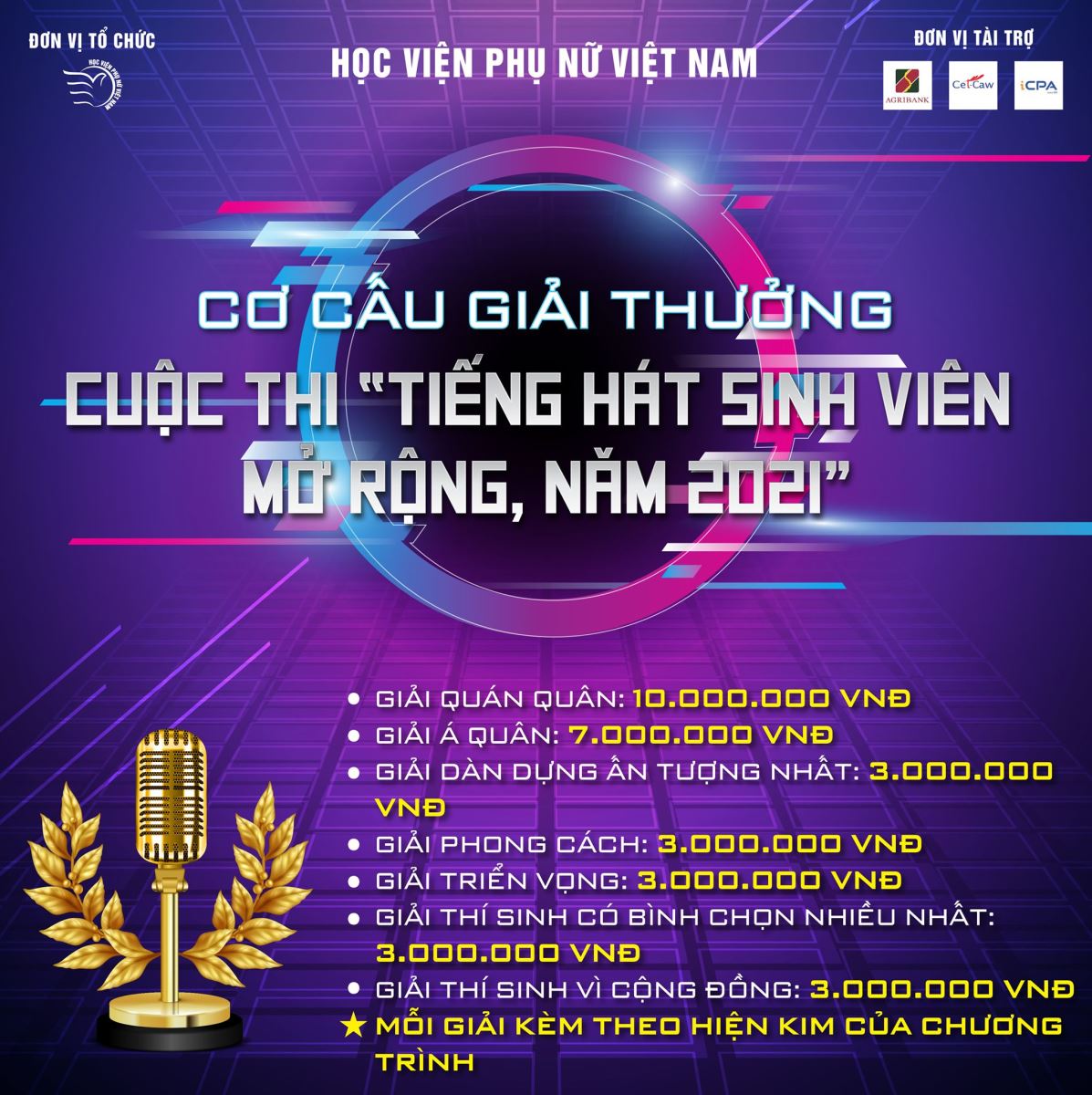 Giải Triển vọng: Tổng giá trị giải thưởng: 3 triệu đồng tiền mặt
