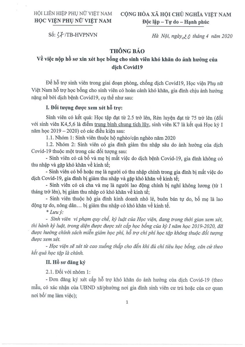 ĐƠN ĐỀ NGHỊ XÉT HỌC BỔNG DO ẢNH HƯỞNG DỊCH COVID-19